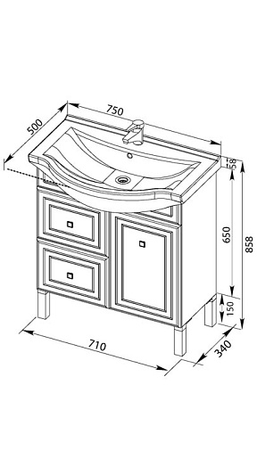 Тумба под раковину Стайл 75 ящики