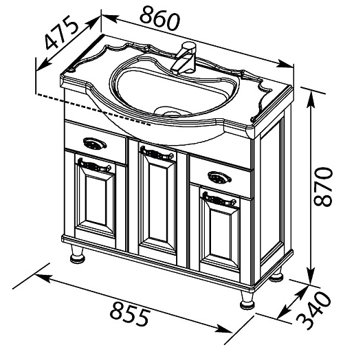 - Тумба: Aquanet Тесса 85, цвет жасмин/сандал, 3 распашные дверцы, 2 выдвижных ящика (185806)