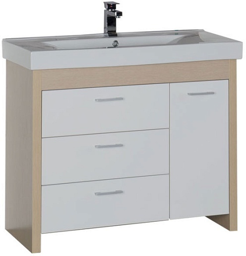 - тумба под раковину Aquanet Тиана 100 светлый дуб: выдвижной ящик - 3 шт., корзина для белья - 1 шт., ручка - 4 шт., откидная дверца - 1 шт.