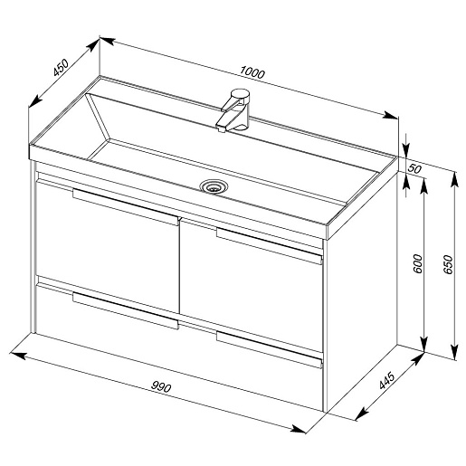 - Тумба для комплекта Aquanet Тиволи 100: 3 выдвижных фасада, механизм доводчика, ЛДСП