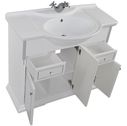 - Тумба: Aquanet Тулуза 90, цвет белый, 3 распашные дверцы, 2 выдвижных ящика (182017)