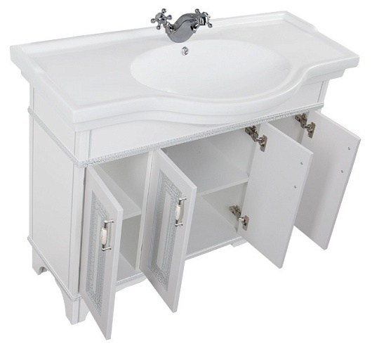 - Тумба: Aquanet Валенса 110, цвет белый, краколет/серебро, 4 распашные дверцы (180148)