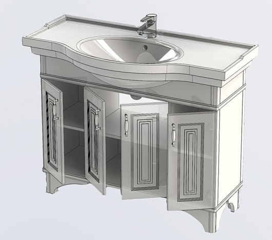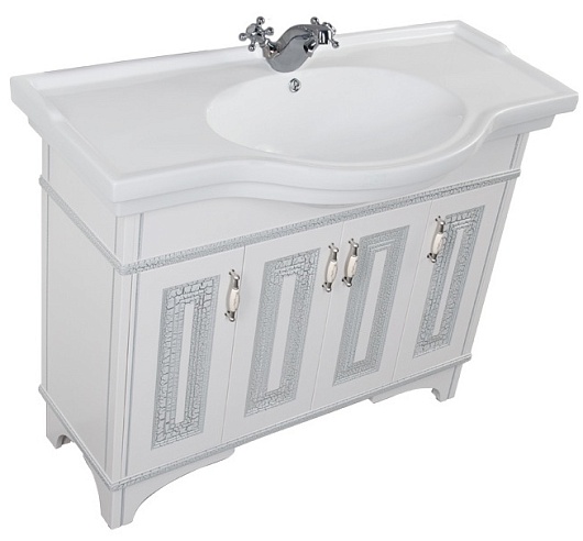 Тумба под раковину Валенса 110 белый кракалет/серебро
