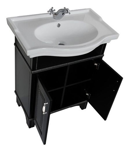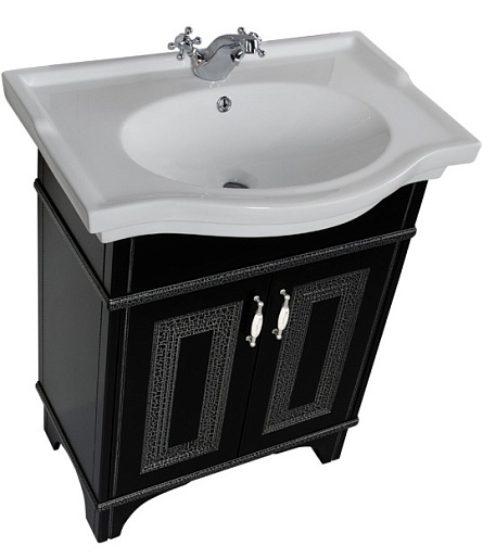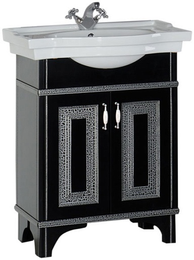 - Тумба: Aquanet Валенса 70, цвет черный, краколет/серебро, 2 распашные дверцы (180311)
