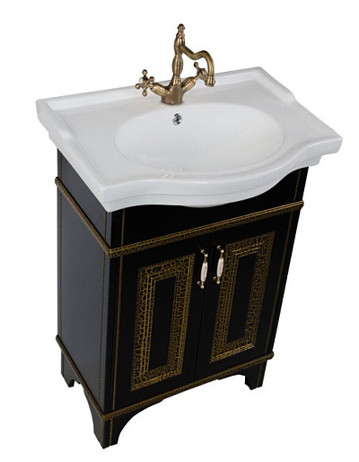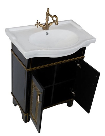 - Тумба: Aquanet Валенса 70, цвет черный, краколет/золото, 2 распашные дверцы (180307)
