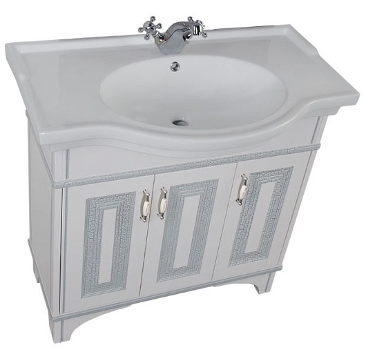 Тумба под раковину Валенса 90 белый кракалет/серебро