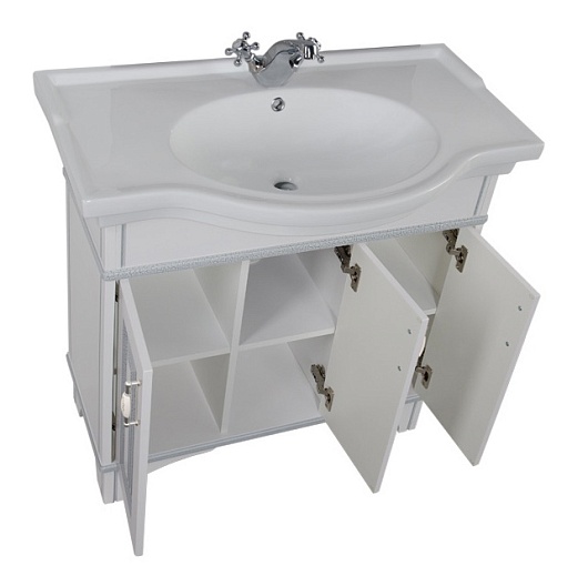 - Тумба: Aquanet Валенса 90, цвет белый краколет/серебро, 3 распашные дверцы (180039)