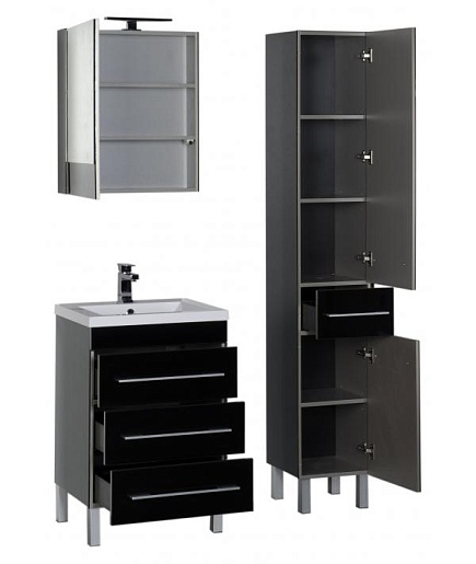 - тумба под раковину Aquanet Верона 58 черная: акриловая кромка, выдвижной ящик - 3 шт., ручка (хром) - 3 шт.