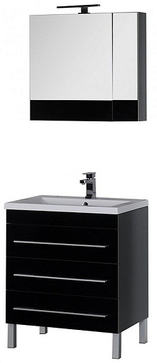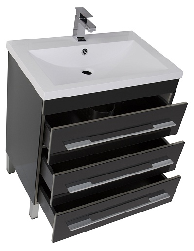 - тумба под раковину Aquanet Верона 75 черная: акриловая кромка, выдвижной ящик - 3 шт., ручка (хром) - 3 шт.