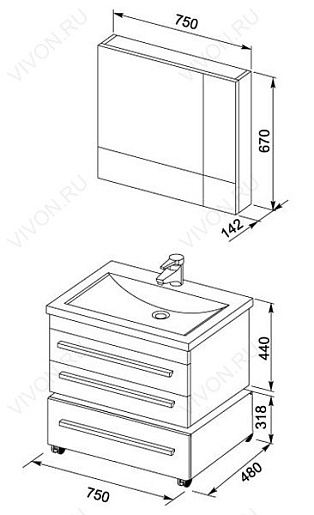 - тумба под раковину Aquanet Верона 75 белая: акриловая кромка, выдвижной ящик - 2 шт., ручка (хром) - 2 шт.
