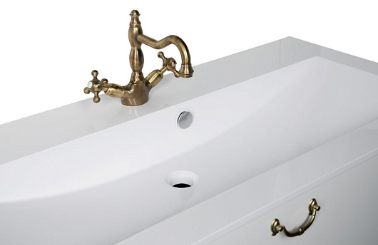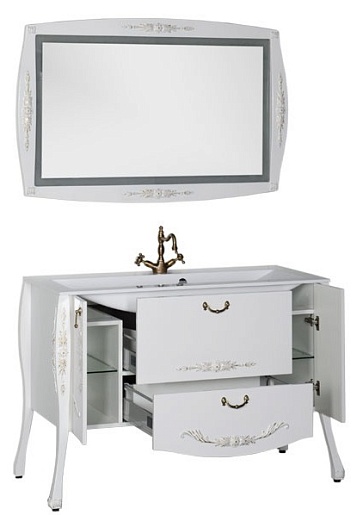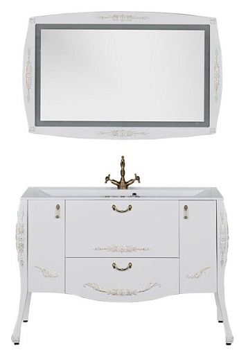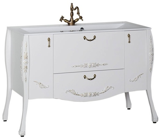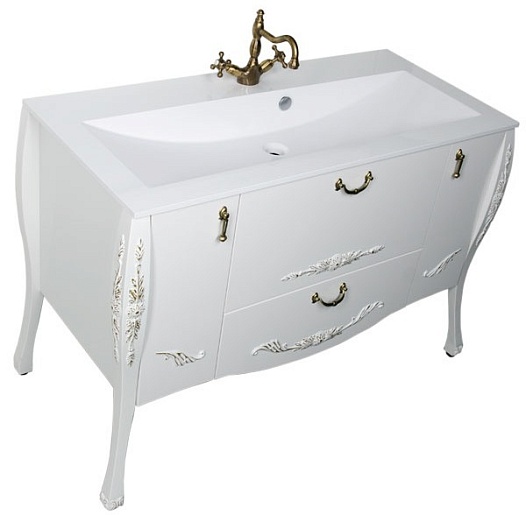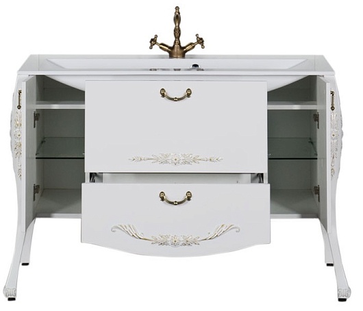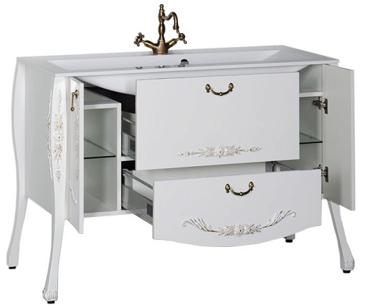 - Тумба: Aquanet Виктория 120, цвет белый глянец/золото, 2 распашные дверцы, 2 выдвижных ящика (183929)