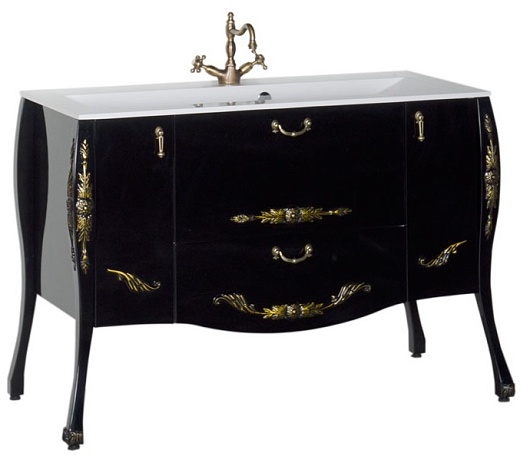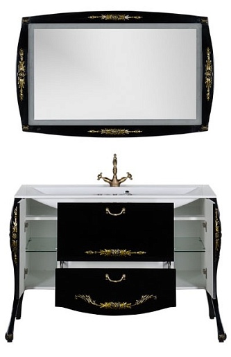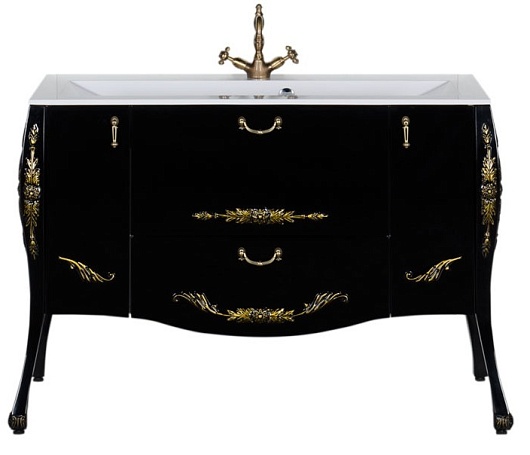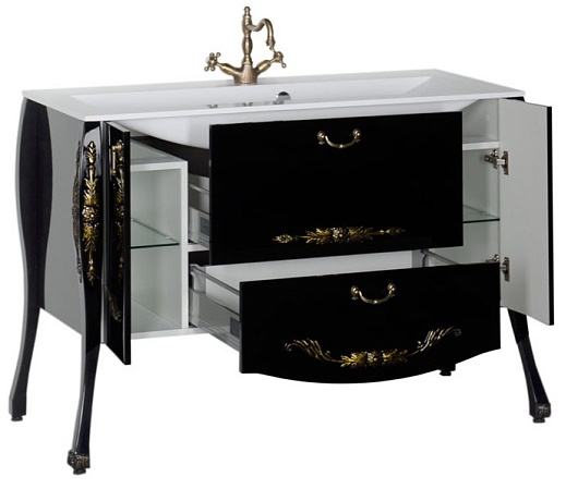 - Тумба: Aquanet Виктория 120, цвет черный глянец/золото, 2 распашные дверцы, 2 выдвижных ящика (183930)