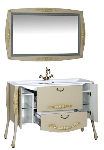 - Тумба: Aquanet Виктория 120, цвет олива, 2 распашные дверцы, 2 выдвижных ящика (182566)