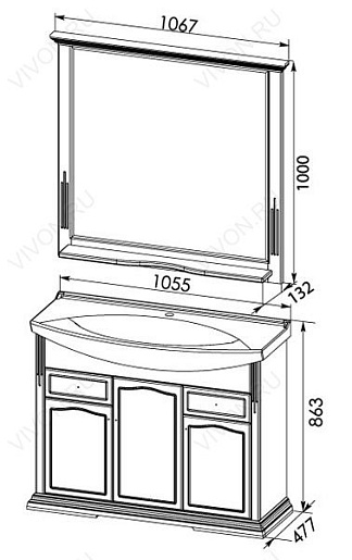 Размеры ШхГхВ: 1067х132х1000 мм