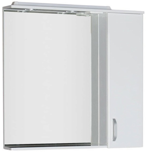 - Описание: влагостойкое зеркальное полотно, полочка, шкафчик (справа), подсветка.
