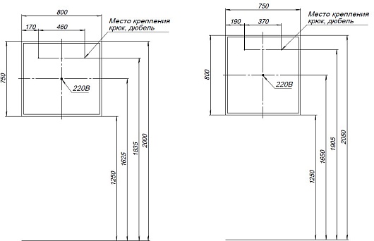 - Размер корпуса (ШВГ): 800x750x20 мм.