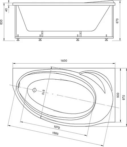 Комплектация: ванна, каркас, фронтальный экран, гидромассажная система (6 форсунок), слив-перелив.