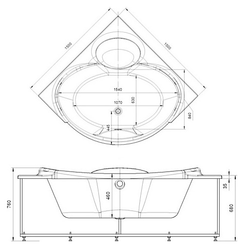Комплектация: ванна, каркас, фронтальный экран, слив-перелив.