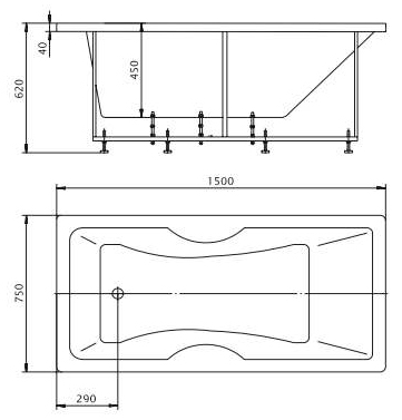 Комплектация: ванна, каркас, фронтальный экран, слив-перелив.