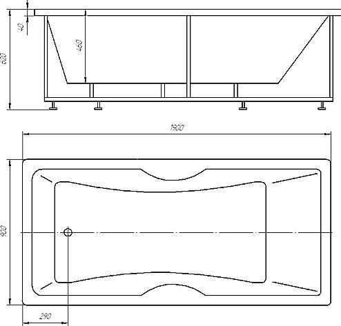 Комплектация: ванна, каркас, фронтальный экран, гидромассажная система (6 форсунок), слив-перелив.