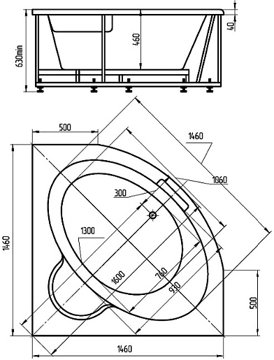 Комплектация: ванна, каркас, фронтальный экран, гидромассажная система (6 форсунок), слив-перелив.