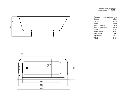 Комплектация: ванна.