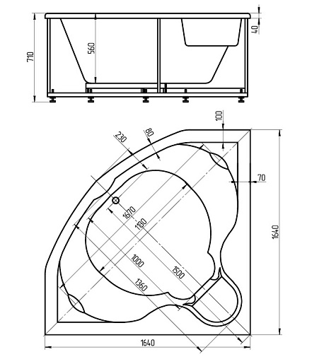 Комплектация: ванна, каркас, фронтальный экран, гидромассажная система (6 форсунок), спинной массаж (12 форсунок), слив-перелив.