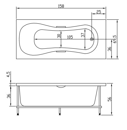 Aquatika Акриловая ванна Аквастандарт Лира Basic
