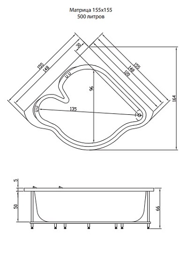 - Гидромассаж (пневматическое управление, 5 форсунок)