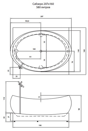 Aquatika Акриловая ванна Арт Сабзеро Standart