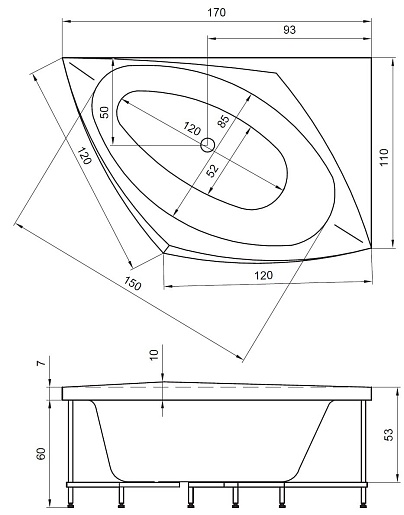 Aquatika Акриловая ванна H2O Альпина Sensa R