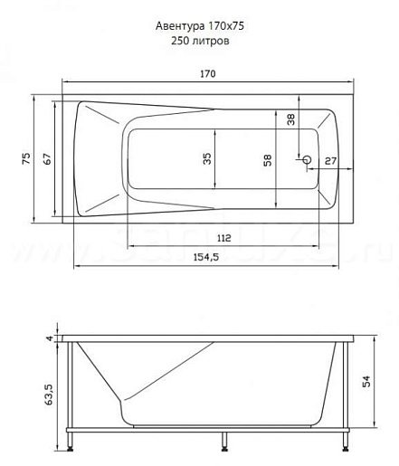 Aquatika Акриловая ванна H2O Авентура Basic 170x75 cм