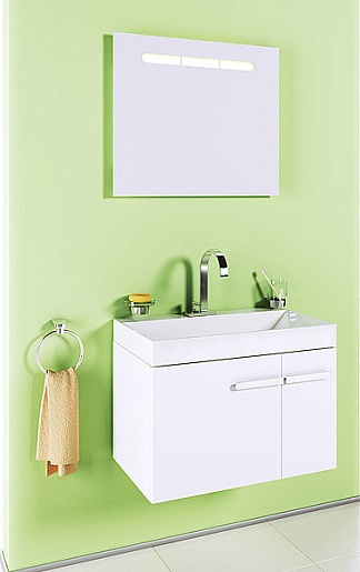 Описание: Тумба под умывальник подвесная, имеет один ящик полного выдвижения с системой плавного закрывания австрийской фирмы «BLUM» и распашную дверь. Раковина Conform 700, арт. Ku.07.04D.