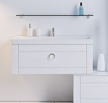 Описание: Тумба под умывальник подвесная, имеет выдвижной ящик полного выдвижения с системой плавного закрывания австрийской фирмы «BLUM» и разделением внутреннего пространства. Раковина Infinity 1000, арт. Inf.10.04.D.