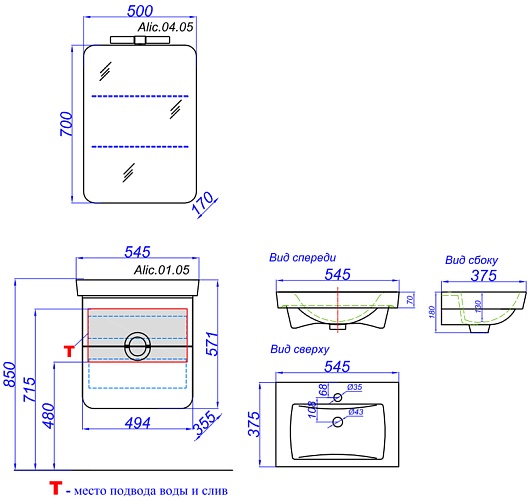 Aqwella Мебель для ванной Аликанте 55 с зеркальным шкафом
