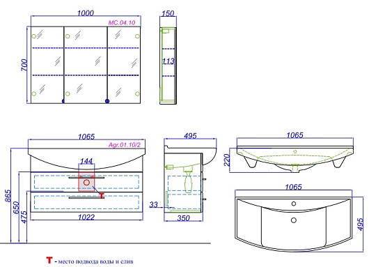 Тумба с раковиной Аллегро 105 - арт. Agr.01.10/2