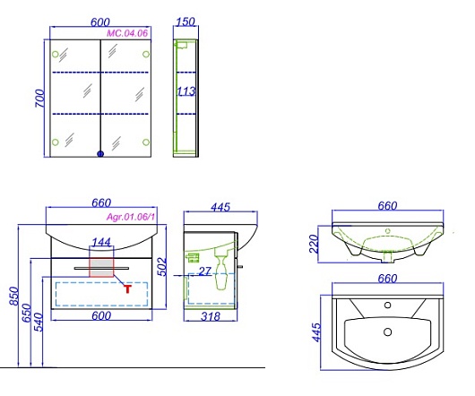 Тумба с раковиной Аллегро 65 - арт. Agr.01.06/1