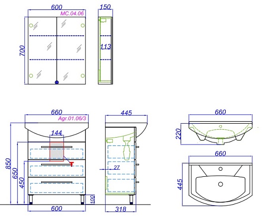 Размеры ШхГхВ: 600х150х700 мм