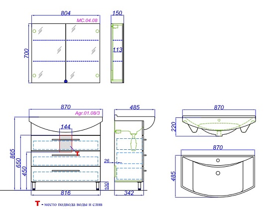 Тумба с раковиной Аллегро 85 - арт. Agr.01.08/3