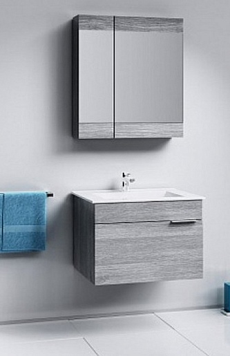 Aqwella Мебель для ванной Бриг 75 подвесная, дуб седой, зеркало-шкаф