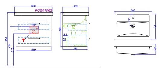 Тумба с раковиной Фостер 60 - арт. FOS01062DS