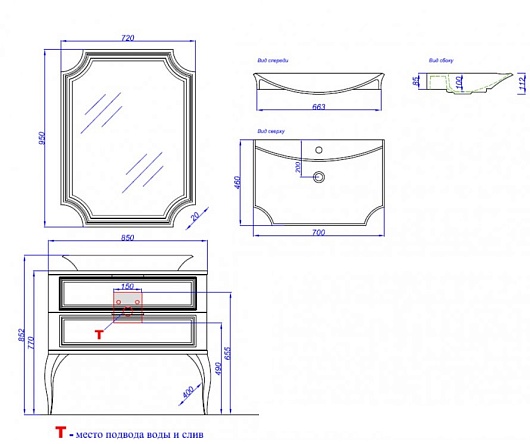 - раковина LA DONNA (арт. p_u_048_01_0700_1_10_0_03), искусственный мрамор, цвет белый