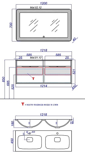 - двойная раковина Malaga 1200 Duet (арт. Mal.12.04.D), искусственный мрамор, цвет белый