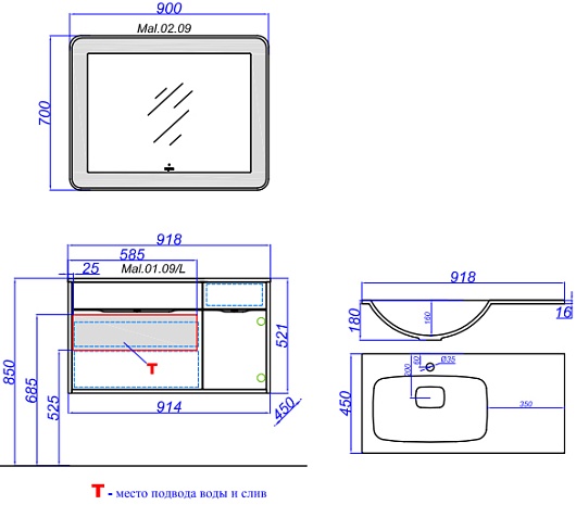 - раковина Malaga 900L (арт. Mal.09.04.D-L), искусственный мрамор, цвет белый