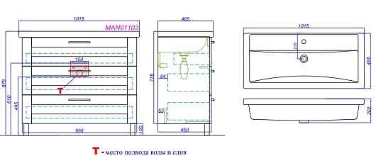 Тумба с раковиной Манчестер 100 - арт. MAN01103