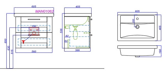 Тумба с раковиной Манчестер 60 - арт. MAN01062