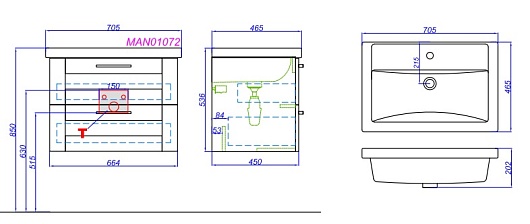 Тумба с раковиной Манчестер 70 - арт. MAN01072