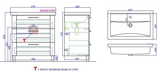 Тумба с раковиной Манчестер 80 - арт. MAN01083