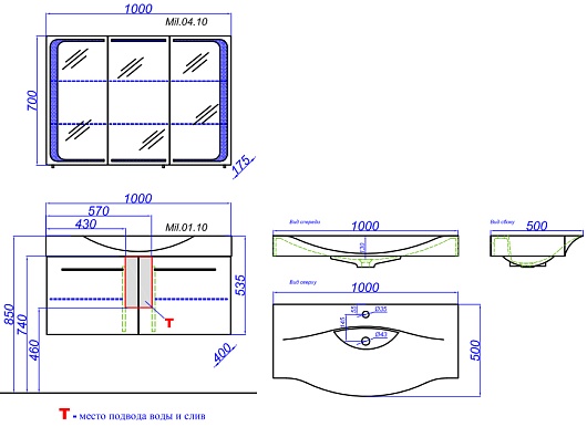 - раковина Bergamo 1000 (арт. Ber.10.04.D), искусственный мрамор, цвет белый