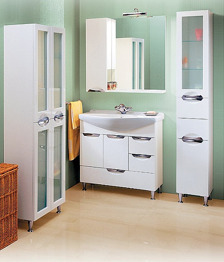 Описание: двухдверный пенал на ножках, с полками и бельевой корзиной.